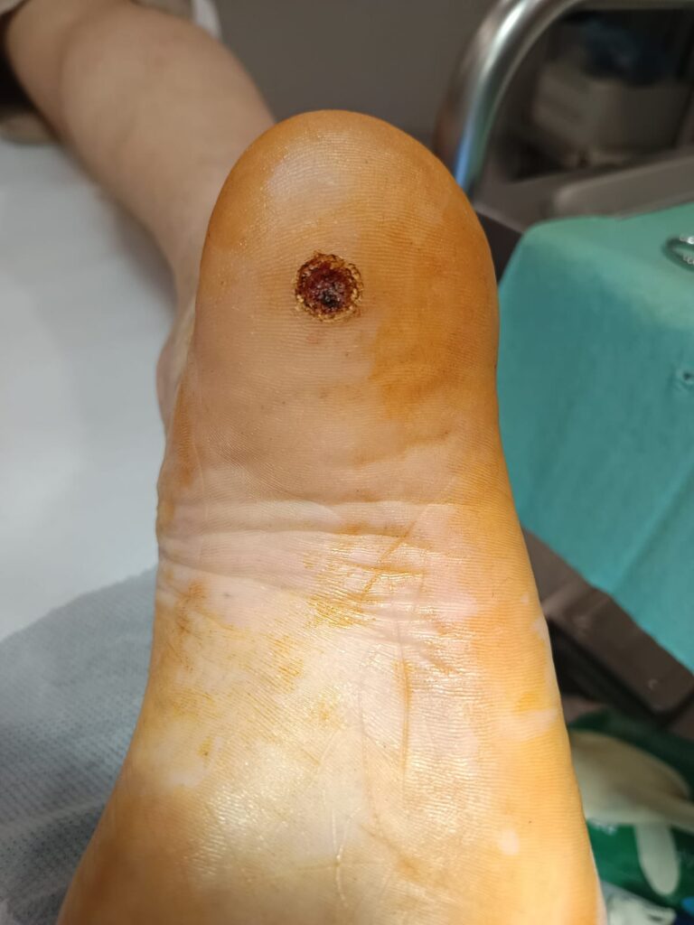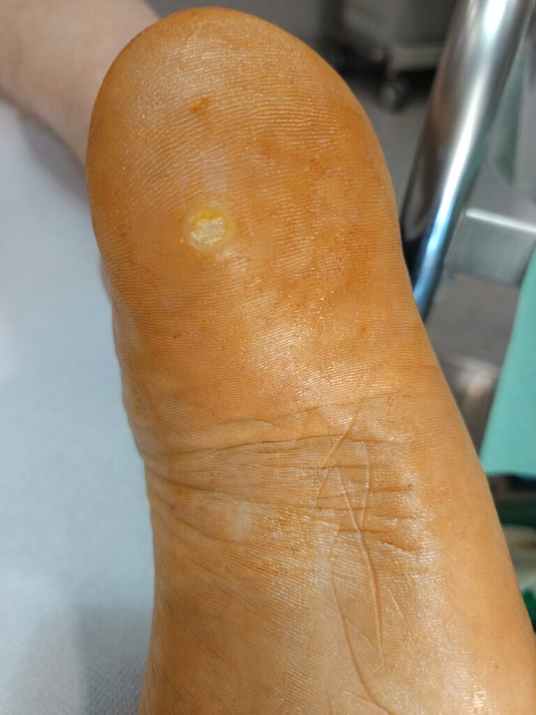 Attenzione! A volte l’apparenza inganna… Le verruche cutanee si possono confondere con formazioni callose. Un altro esempio nella prima foto. Nelle successive si vede un’altra verruca della pianta del piede prima e dopo la vaporizzazione con LASER CO2. La zona circostante la verruca non è stata coinvolta dal trattamento LASER. Per questa ragione, gli esiti cicatriziali saranno minimi.